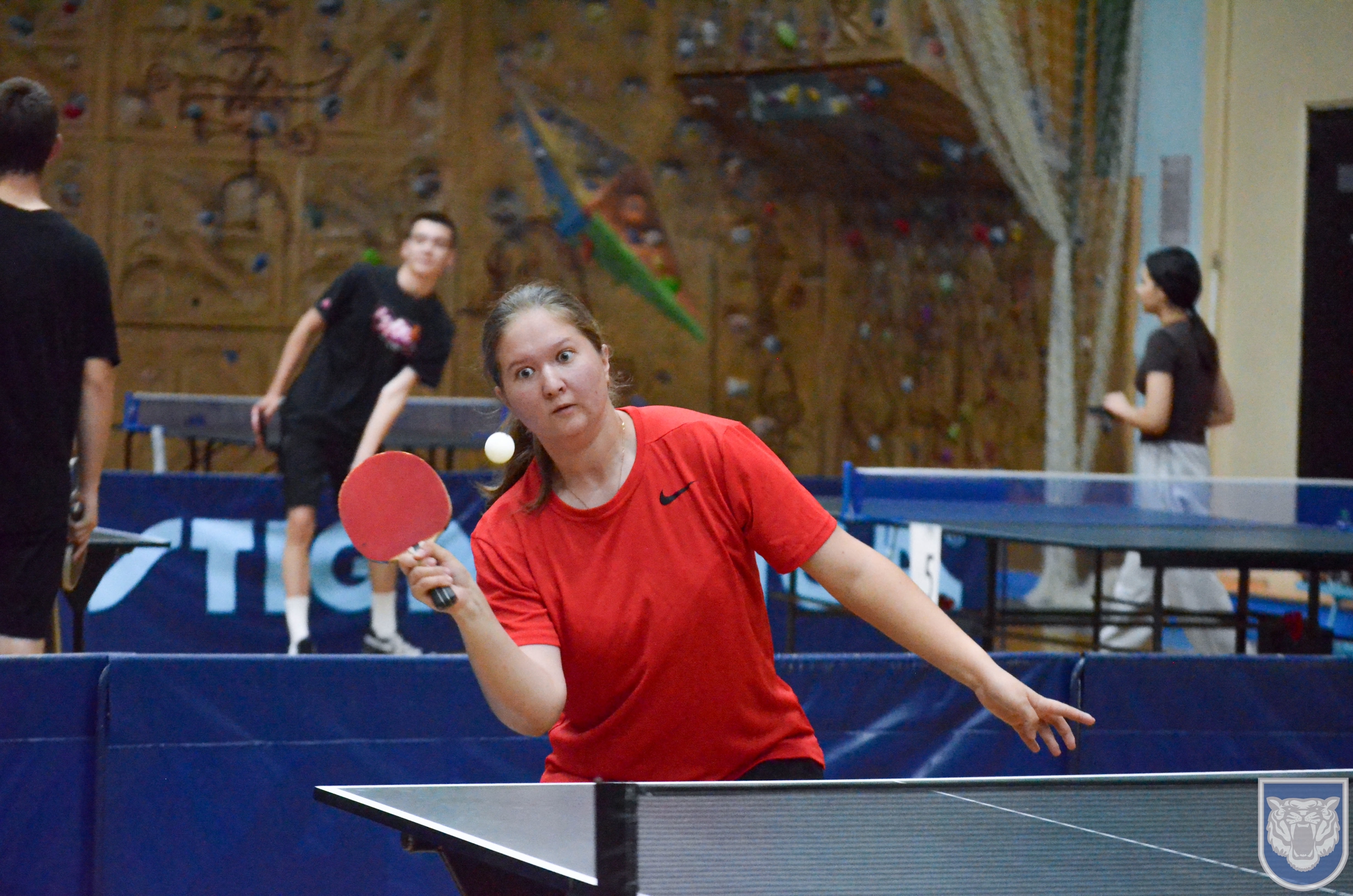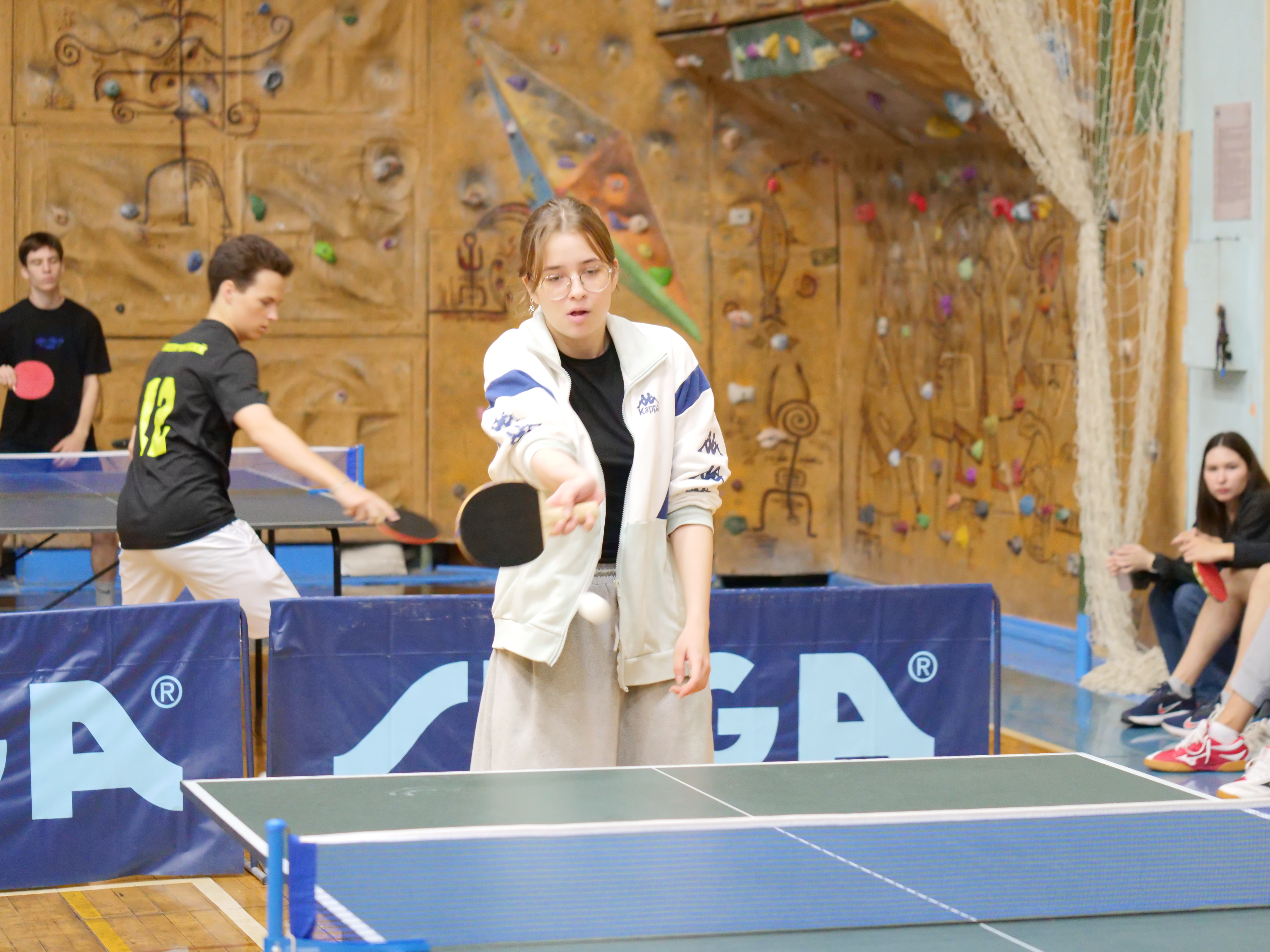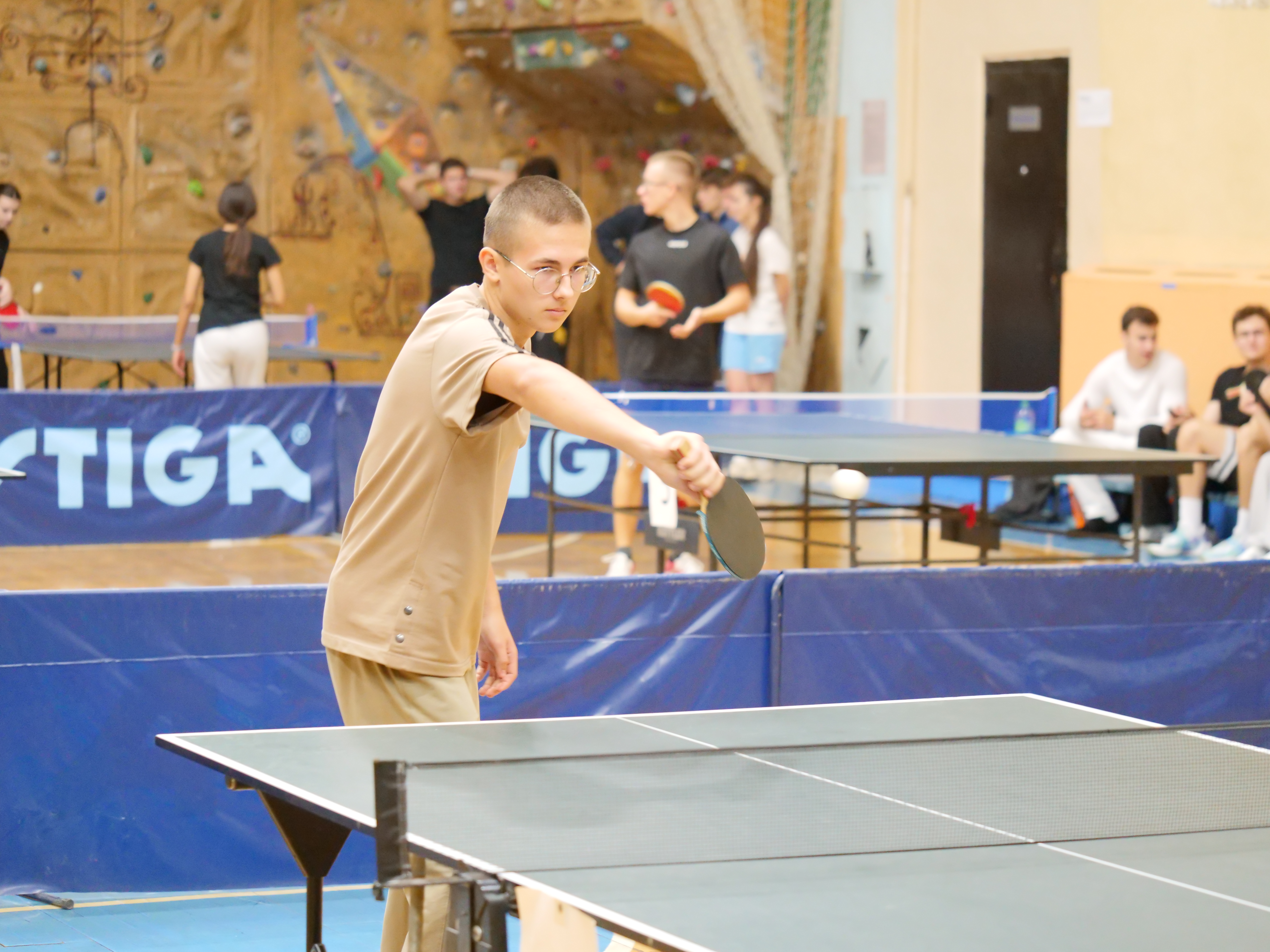 В это же время, во втором игровом зале собрались любители настольного тенниса. В команде могло быть до пяти участников, всего в соревнованиях приняли участие 16 команд. На первом этапе, команды играли в группах, из которых выходили по две лучшие, таким образом, восьмерка сильнейших команд продолжала борьбу за медали.  На протяжении всего турнира, в зале царила атмосфера напряженности, накал борьбы повышался от партии к партии. В захватывающей борьбе, определились победители и призеры соревнований: