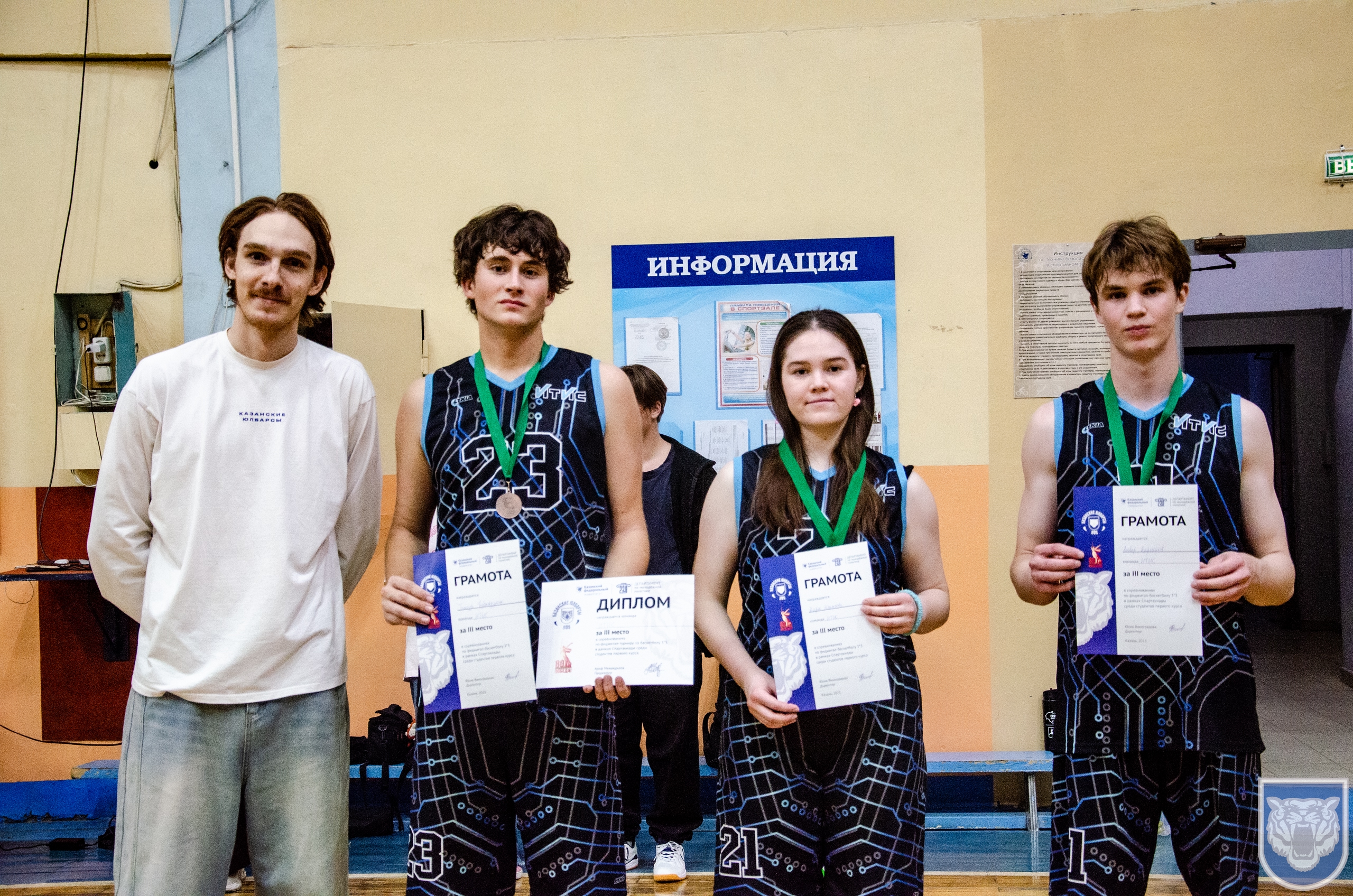 И пока в плавательном бассейне проходили водные баталии, в КСК КФУ «УНИКС» прошли соревнования по фиджитал-баскетболу в рамках Спартакиады студентов первого курса КФУ 2025/26 учебного года. Эти соревнования заканчивали Спартакиаду первокурсников.