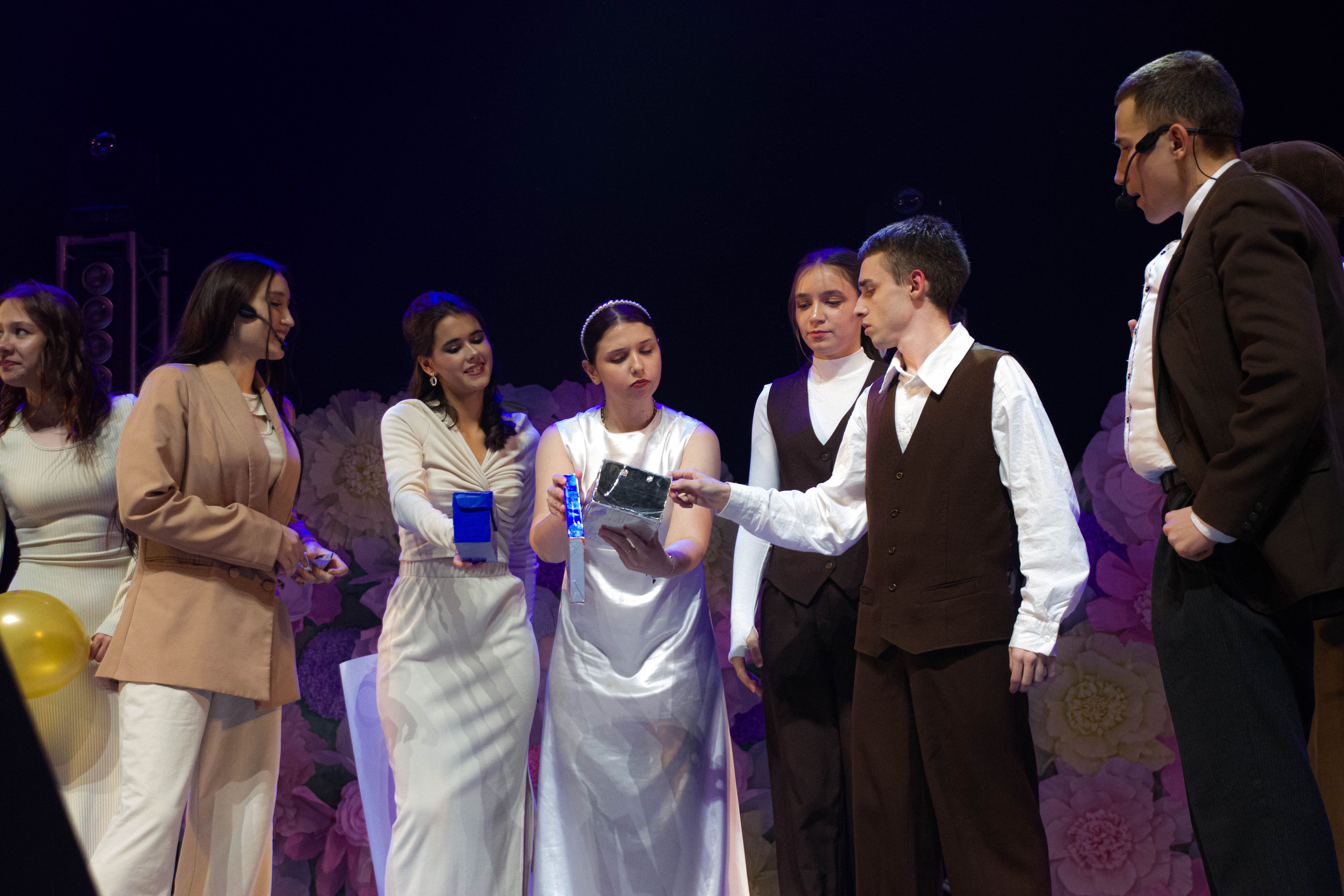 Настоящим праздником для зрителей стала программа Института филологии и межкультурной коммуникации. Студенты пригласили всех стать гостями свадьбы — события, в котором столкнулись два поколения и два взгляда на жизнь. С одной стороны — родители, мечтающие о традиционном торжестве с выкупом, песнями и обрядами, с другой — молодые, предпочитающие современный стиль и свободу самовыражения. Героям предстояло найти компромисс, чтобы праздник объединил всех — ведь главное не формат, а то, что все они одна семья.